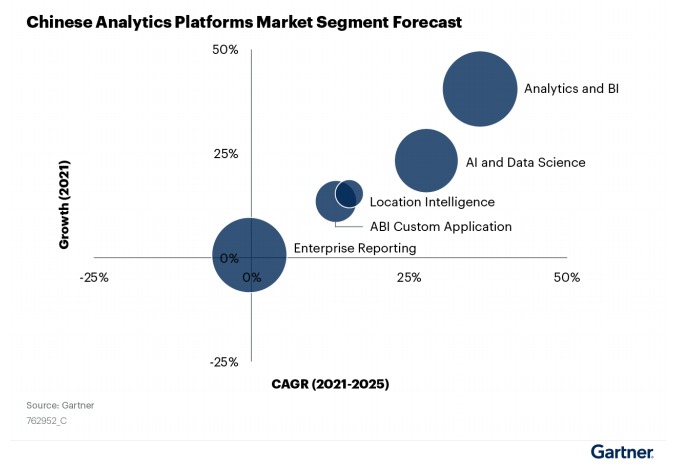 BI平台、AI和数据科学平台、ABI定制化应用和位置智能平台等方向。而在这些细分市场中,增长最快的领域是ABI平台、AI和数据科学平台,预计复合年增长率分别为36.23%和27.72%。