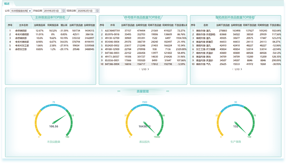 对于制造业来说,产品质量是企业的生命线,工厂是生产产品的地方,也是直接决定产品质量好坏的地方。必须制定一些能够有效衡量流程及实施成果的指标,以确保行动实施的正确性。此外,还必须每隔一定时间对收集到的数据进行评估, 以检查流程是否处于控制轨道还是已脱离控制,并在事故发生前主动采取行动。包括废品损失、废品率分析、生产事故。
