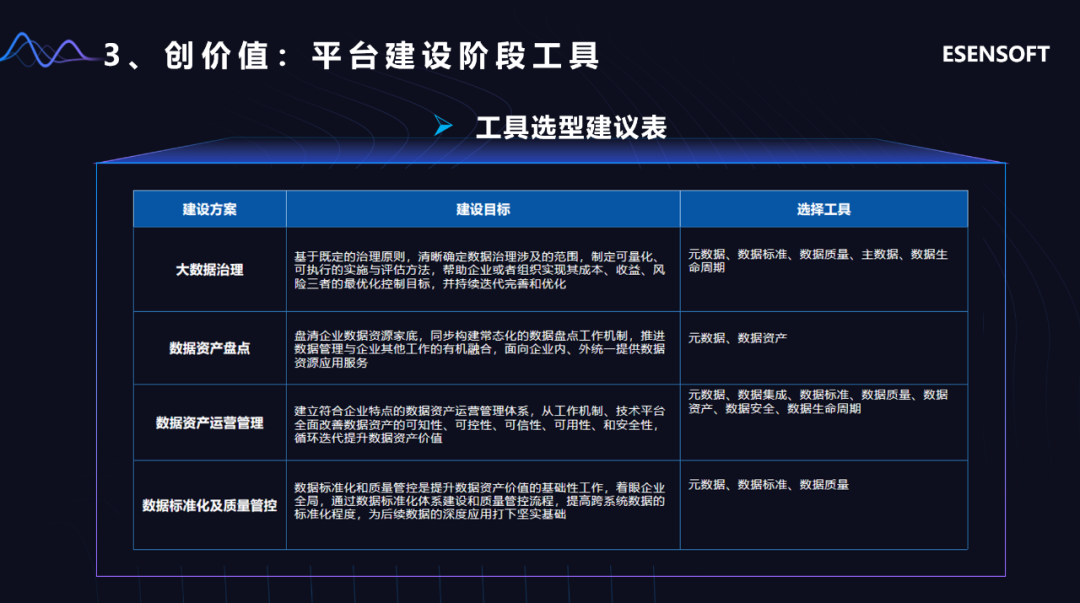 毛大群强调,在咨询阶段,DCMM评估成为重要助力工具集;在体系建设阶段,数据治理绩效考评和成果可视化必不可少;在平台建设建设阶段,综合性数据治理平台工具能够事半功倍。并分享了Ebpay在数据治理领域的应用案例,展示了数据治理工具平台大幅缩短项目实施工期,有效降低总体实施成本。