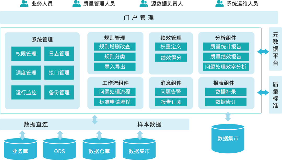 数据质量管理平台,一方面满足技术部门长效的数据质量管控,另一方面能够形成业务精英为主、技术精英为辅的业务数据梳理体系。