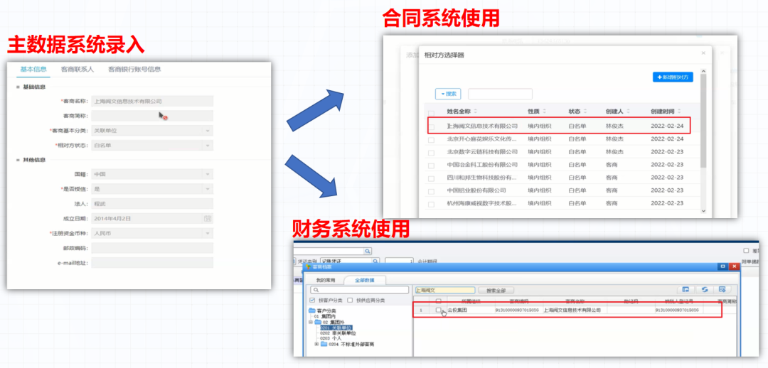 某投资集团企业主数据系统的建设有效地将各主数据的来源从多源头整合到了单一源头,在数据采集源头就对数据进行了校验、审查,从而提升了数据的质量,避免了单一数据在多个业务系统重复建设、容易出错、成本较高的现象,为企业给予了权威的主数据。