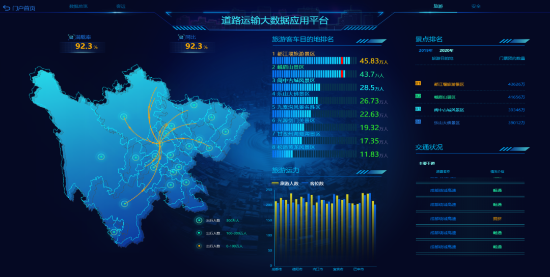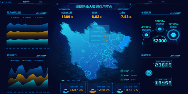对于交通管理部门来说,利用可视化大屏能为交通管理指挥给予科学的决策支持。由于大屏集成地理信息系统、视频监控系统、交管部门各业务系统数据,对交通路况、警力分布、警情事件、接处警情况等要素进行综合监测,能够帮助管理者实时掌握交通整体运行态势。