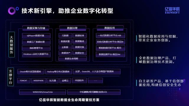 主数据、数据集成、数据交换、数据资产、数据生命周期、数据安全九大功能模块,可帮助政企实现数据融合治理与数据质量管理。