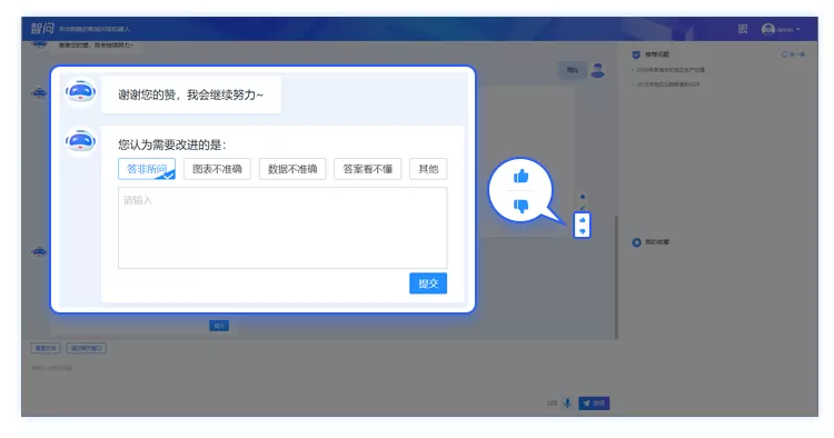 系统后台会记录大家的意见,不断训练模型,促使智问持续进步!体验demo送好礼活动正在火热进行中,期待您的意见和反馈哦~