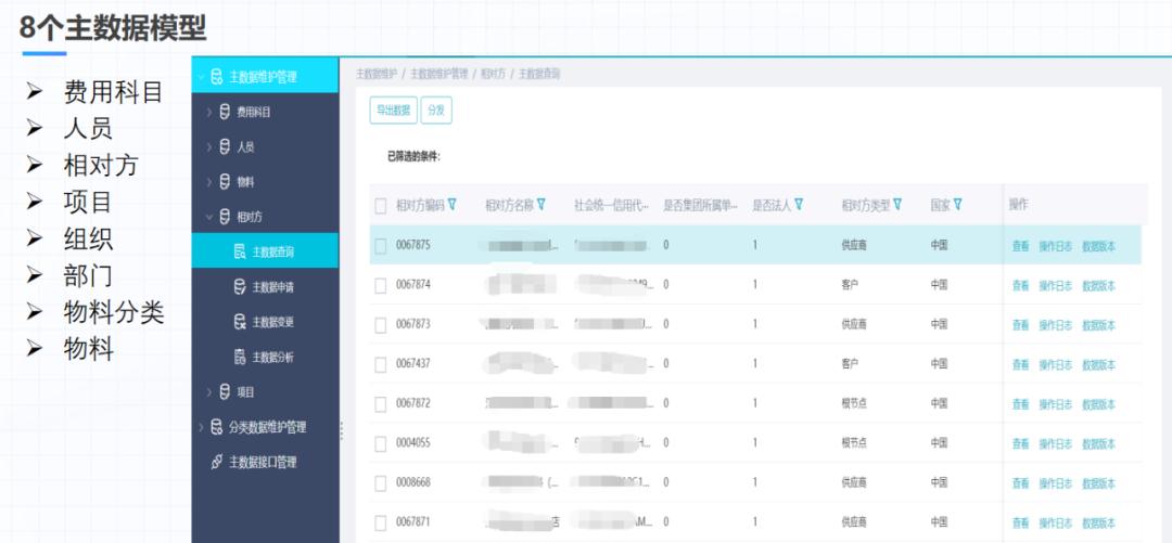 平台支持主数据申请(人工录入、文件导入、ETL 自动采集)、审核(图形化工作流配置,支持会签、分支等审批方式)、维护(新增、修改、冻结、版本追溯)等操作。例如,物料主数据变更需触发审批流程,系统自动记录变更人、时间、内容,确保每一次修改有迹可循。