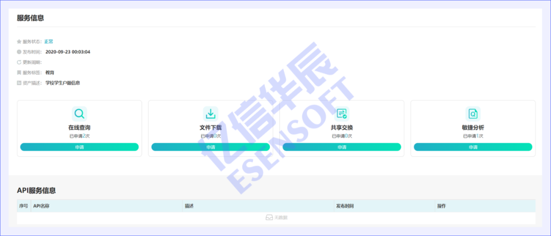 4、资产应用,开放服务。落地数据资产目录,将数据资产以“服务”的形式进行发布,实现数据资产的共享以及面向外部的数据开放。