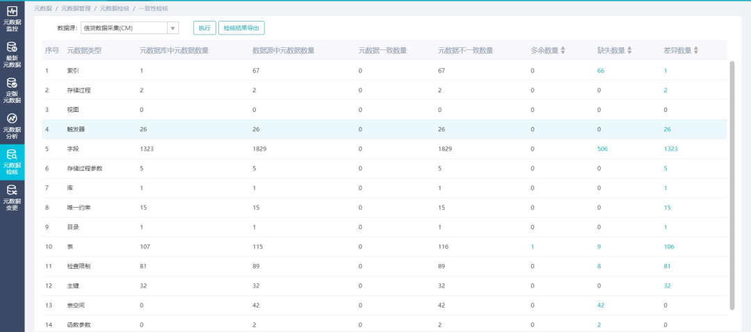由于元数据是很多数据管理活动的基本,所以所有类型的数据中,元数据的质量是最为重要的。元数据管理平台给予元数据质量检核功能,包括一致性检核、属性填充率检核和组合关系检核,是保障元数据质量的重要手段之一。