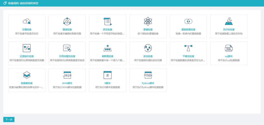 除此以外,睿治平台内置16种规则模板,用户只需顺利获得简单界面化的方式新建规则。平台支持单条和批量建规则,可以根据已经存在的模板新建规则,可以根据标准来新建规则,满足不同场景创建规则的需求。