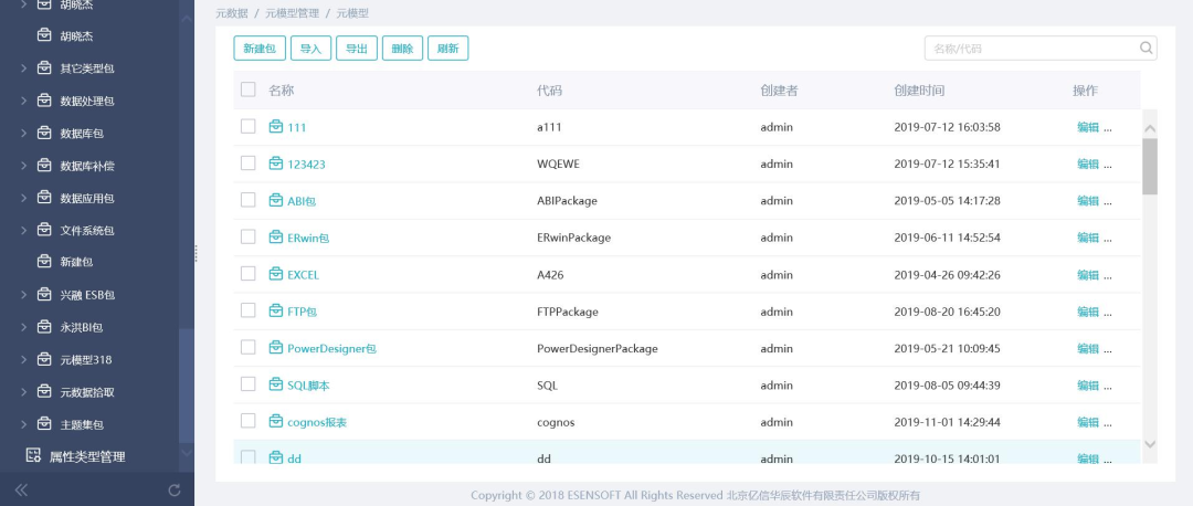 睿治元数据以Meta Object Facility(MOF)规范为基础,支持XML格式的元模型导入和导出,同时内置大量技术元数据、业务元数据的元模型,用户可直接使用。元模型管理对元模型的基本信息、属性、父子关系、依赖关系、组合关系的增删改查操作,内置元模型的内置信息不允许修改或者删除,但可进行新增操作。具体功能界面如下: