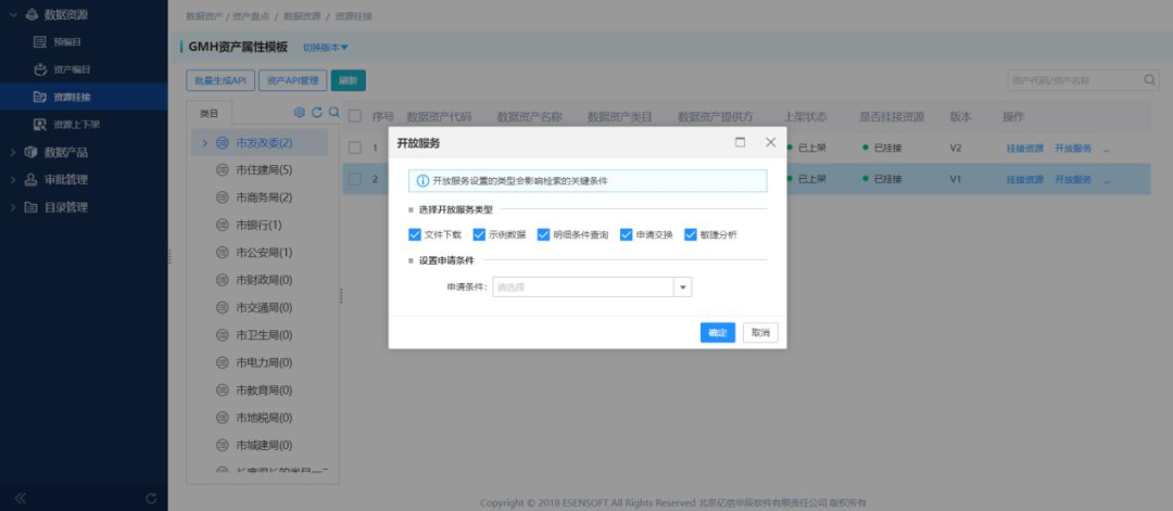 数据资源和数据产品都依托资产目录运营,标准的目录运营流程包括:预编目、正式编目、目录变更、目录下架和服务申请,管理员可以在上述流程中选择内置或者自定义工作流。