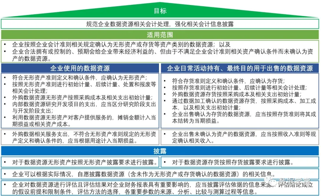 政部会计司于2023年8月21日正式发布了《企业数据资源相关会计处理暂行规定》(以下简称“暂行规定”),规范了企业数据资源相关会计处理,同时强化了相关会计信息披露。该暂行规定的征求意见稿在2022年12月9日发布,对于数据资源“入表”范围和条件、会计处理适用的准则等广泛征求意见。暂行规定的颁布贯彻落实了党中央、国务院关于开展数字经济的决策部署,有助于进一步有助于和规范数据相关企业执行会计准则,准确反映数据相关业务和经济实质。同时,也将为持续深化相关会计问题研究积累中国经验,有助于在国际会计准则相关研究制订等工作中更好发出中国声音。暂行规定主要围绕数据资源是否可以作为资产入表,数据资源及相关交易如何进行会计处理,如何在财务报表中列示,以及需要做出何等程度的披露等方面进行规范,将自2024年1月1日起施行且采用未来适用法。