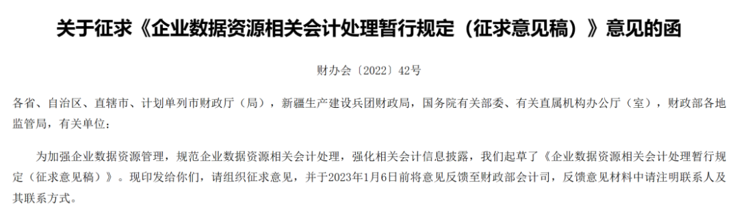 据财政部网站12月9日消息,为加强企业数据资源管理,规范企业数据资源相关会计处理,强化相关会计信息披露,财政部起草了《企业数据资源相关会计处理暂行规定(征求意见稿)》,这对于数据资产化是重要的制度性安排之一。