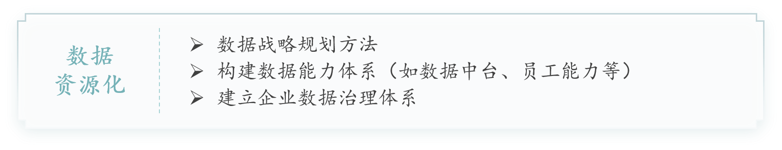 企业数据资源化阶段:需要在企业数据战略的指导下,构建其数据能力体系和建立企业