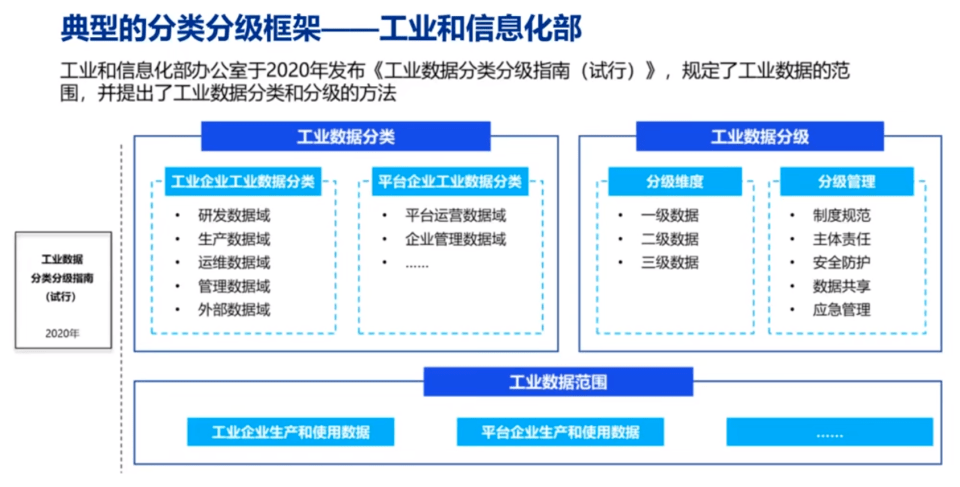 工业和信息化部也发布了《工业数据分类分级指南》,将工业数据数据分级和分类的框架更具体化和细化。