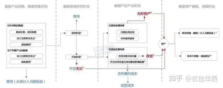 这个阶段有一些费用或者说有一些资源能够形成资产,需要进行一些摊销和减值。对数据资源无形资产而言,更需关注相关产品或服务的市场需求变化、竞争产品更达及相关法律法规约束,企业至少每年年度终了,对无形资产的使用寿金及提销方法进行复核。同时企业需要按照(企业会则第8号--资产减》的规定在资产负表使用寿命有限的数资源形产是否在值象,如发生了减值象,应当评其可收回金额,确认相关的资产减值准备。对于使用寿命不确定的数据资源无形资产,无论是否存在减值迹象,每年都应当进行减值测试。