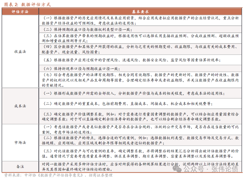 根据2023年9月8日中国资产评估协会推出的《数据资产评估指导意见》,数据资产评估主要有收益法、成本法和市场法三种评估方式。我们将三种评估方式总结如下。