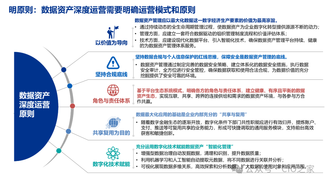 明原则:合规为基,价值为导数据资产的深度运营必须遵循一定的原则: