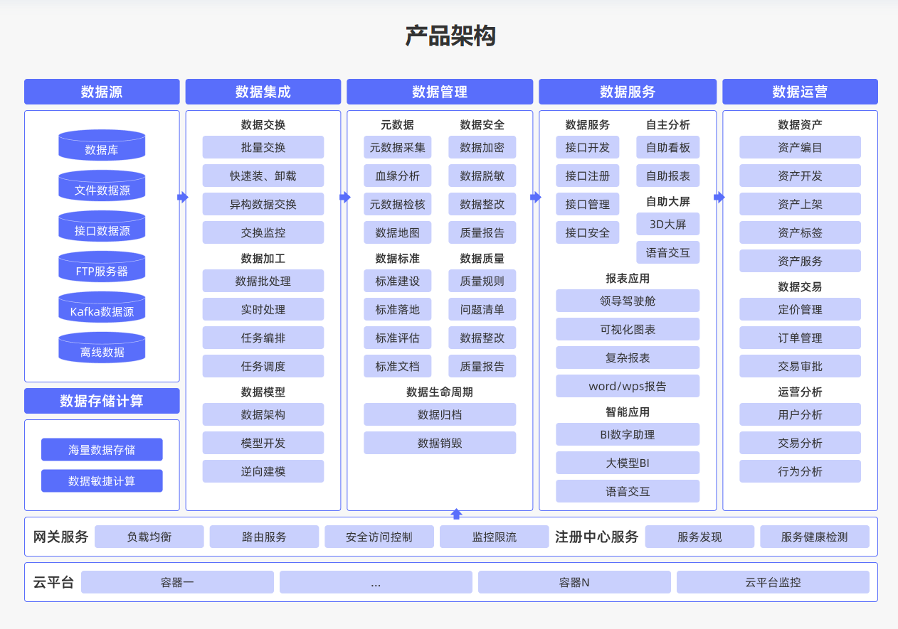 考虑长远规划: 平台应具备良好的扩展性,能够支撑企业未来数据要素化、数据交易等更高级别的数据资产运营需求。