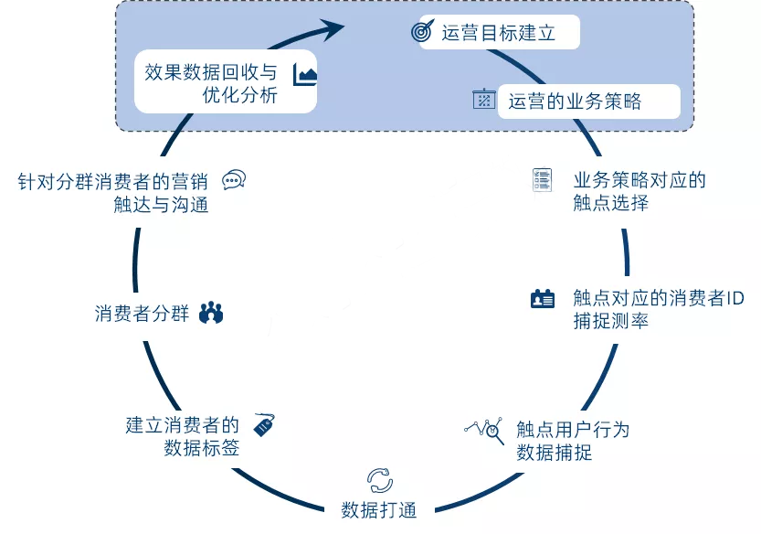 上图:传统上我们的消费者营销与运营体系是蓝色框内的部分,但为积累数据资产,必然涉及到更多的数据运营的部分。