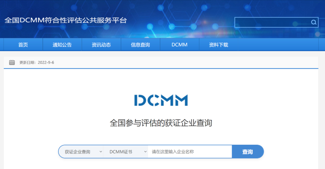 企业可以在数据管理能力成熟度评估公共服务平台(http://www.dcmm.org.cn/hzqycx.jhtml)上进行查询。