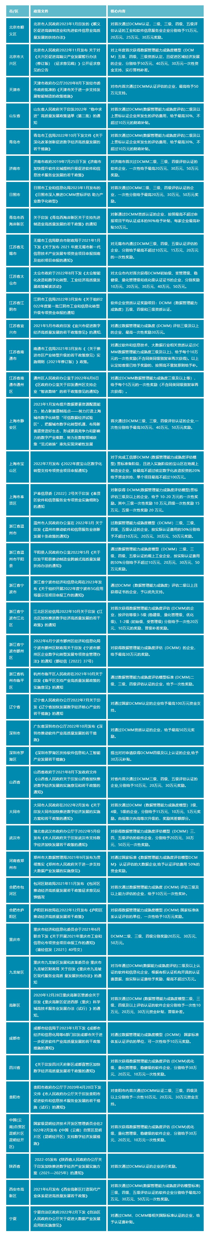 得补贴:国内多地都已针对DCMM贯标出台了相关的补贴政策。