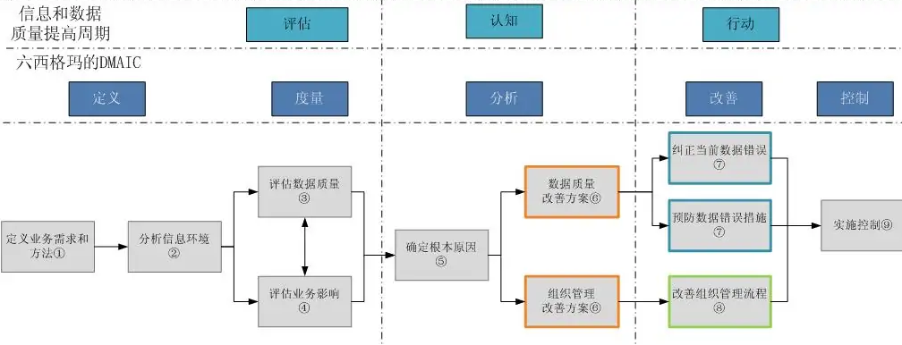 企业组织应该如何解决数据质量问题? 可以映射到六西格玛管理方法,如下图