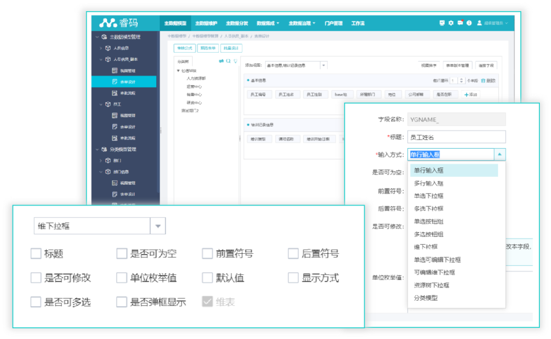 3.高易用性。可视化主数据快速建模,个性化模型表单设计,全场景审批流程,行业通用主数据模型复用,保证高效正确建模。